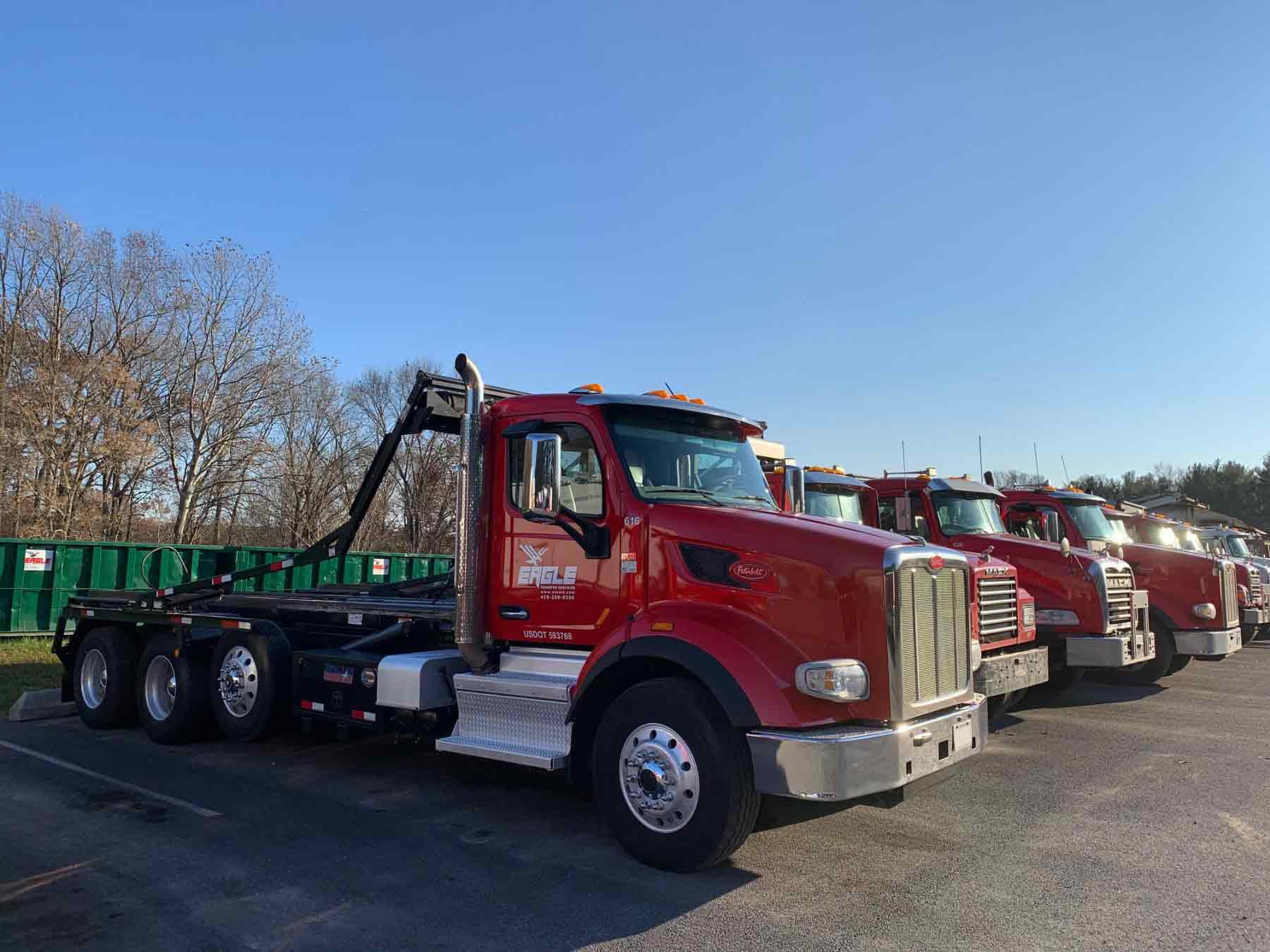 Peterbilt Fleet: Our immaculately-maintained fleet of Peterbilt trucks serves your commercial and industrial waste needs.